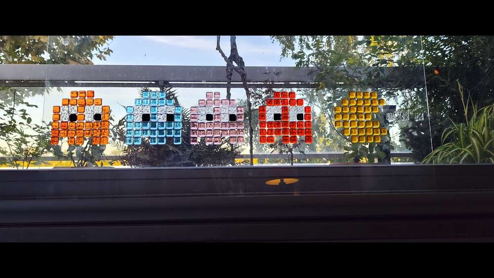 De mon côté, j'utilise cette techniques notamment pour développer un univers dans le domaine du Pixel Art, avec des références notamment aux premiers jeux vidéo (Pac Mac, Space Invader, Mario, Tétris, etc...). Je commence par découper mes pixels dans les verres de couleur adéquats, puis je les fais fondre au four à 850° Il prennent alors un aspect adouci que je recherchais. Je les colle ensuite sur une plaque de verre transparent avec de la colle UV, une colle extrêmement résistante qui a en outre la particularité d'être totalement invisible. On peut également envisager avec cette technique une implantation "in situ", sur des fenêtres ou des miroirs. J'ai également développé une technique innovante de "dessin au trait" (ou "Line Art"), où le trait est constitué d'un fil de cuivre fusionné entre deux plaques de verre transparent. Ce tableau, ensuite placé sur un présentoir éclairé par en dessous par un bandeau de leds, sur la tranche du verre, a la particularité de faire ressortir le dessin et la matière du verre fusionné. (voir la galerie photos pour des exemples).