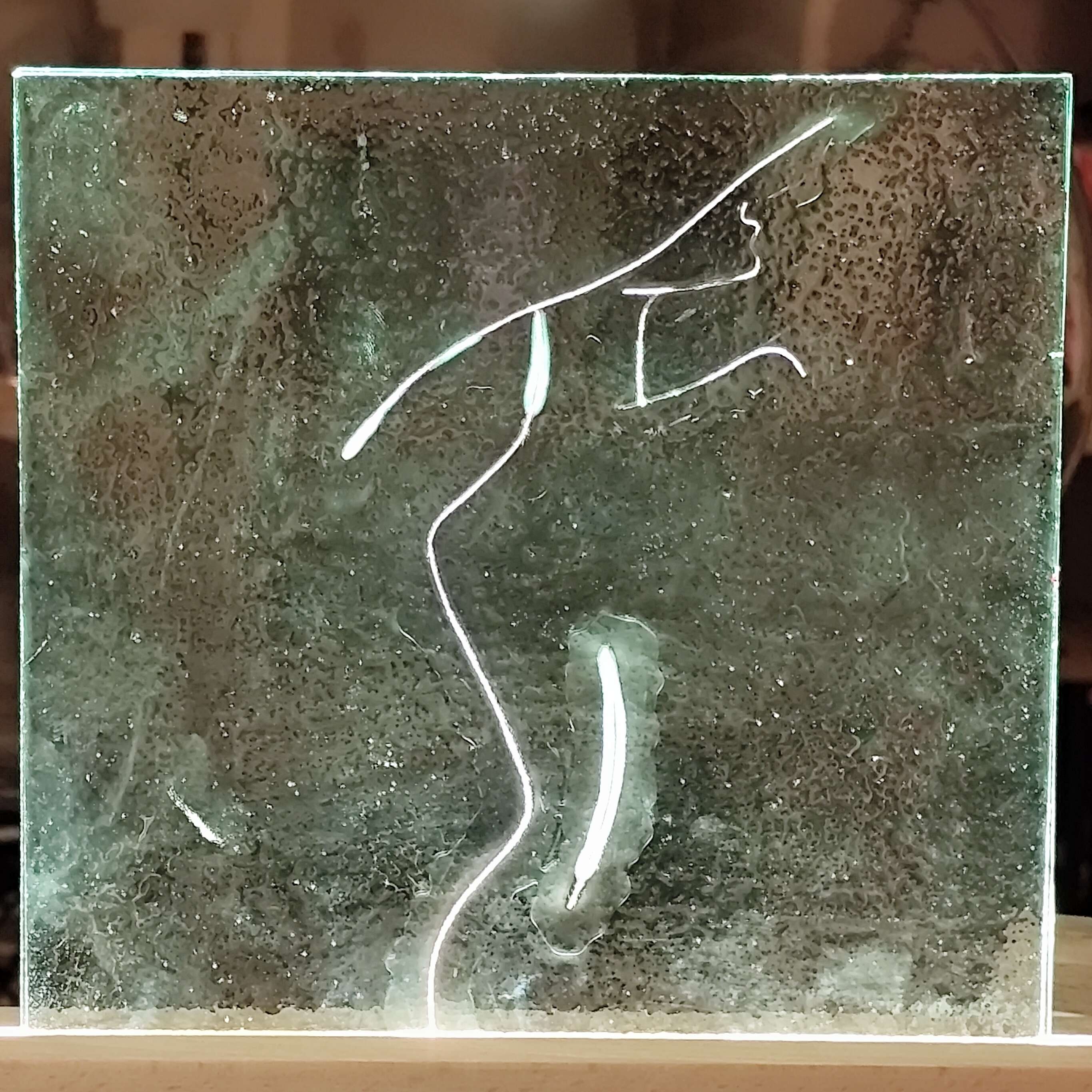 A la fin de la (ou des) cuissons, on obtient une pièce de verre unique, d'un seul tenant. C'est un peu comme si on obtenait un vitrail sans délimitation entre les différentes pièces de verre. Les seuls limites sont l'imagination et... la taille du four, dans le respect des impératifs techniques lièés essentiellement à la cuisson.