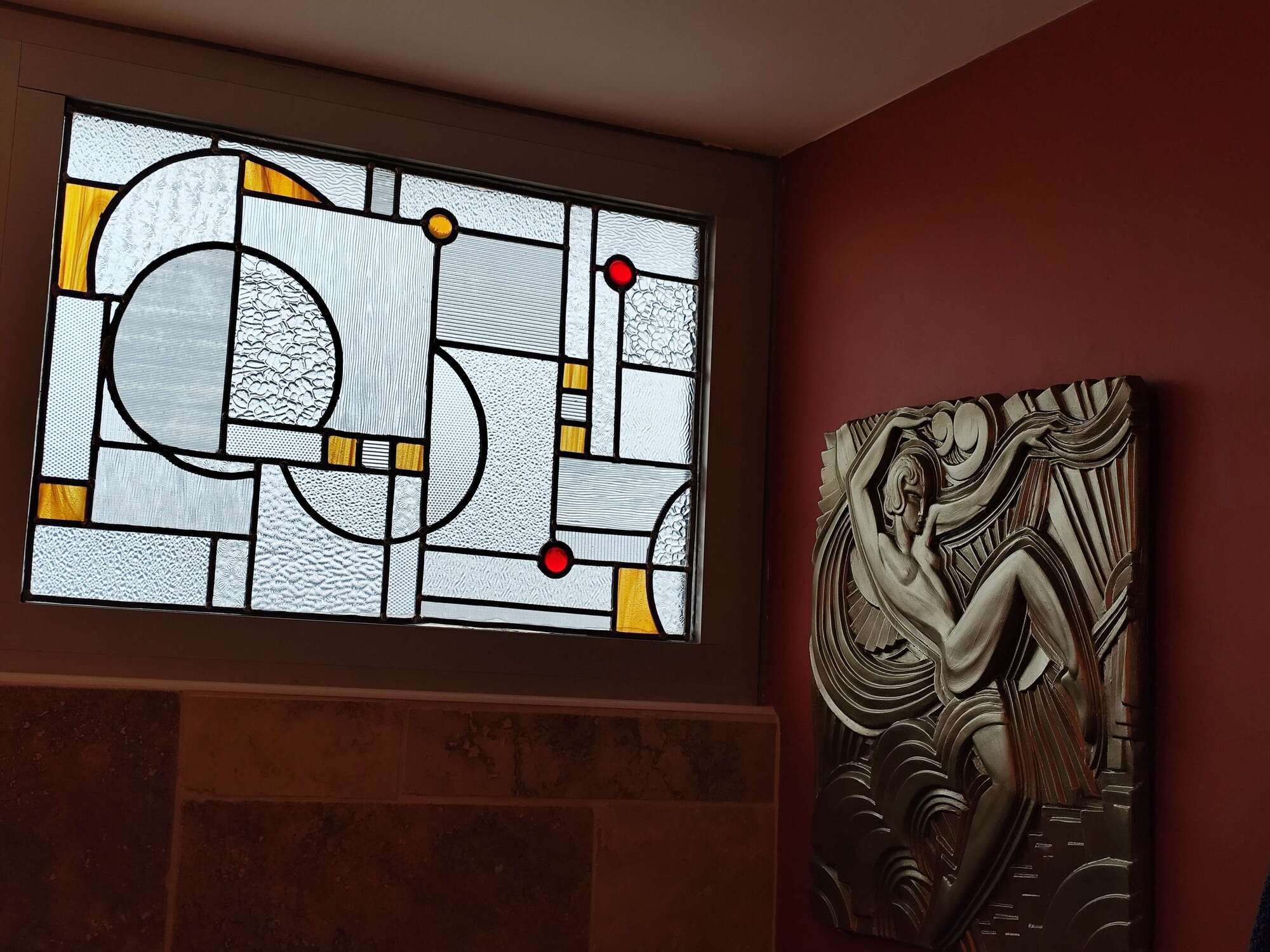 Le vitrail magnifie la lumière. Il permet de créer de la chaleur et une ambiance toute particulière dans un intérieur. Il permet également de séparer deux espaces dans une pièce, ou de briser un vue vers un environnement peu intéressant, comme une cours intérieure d'immeuble par exemple.